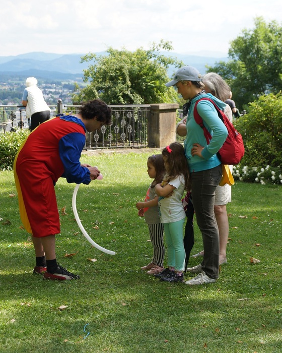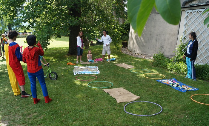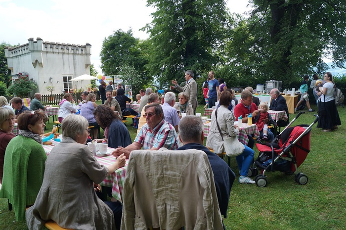 Familien feiern im Park von Schloss Wolfsberg