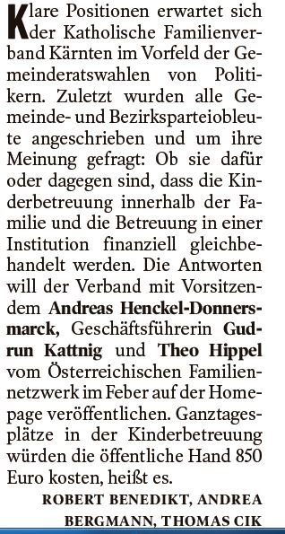 Andreas Henckel Donnersmarck, Vorsitzender des Kärntner Familienverbandes, zur aktuellen Familienpolitik